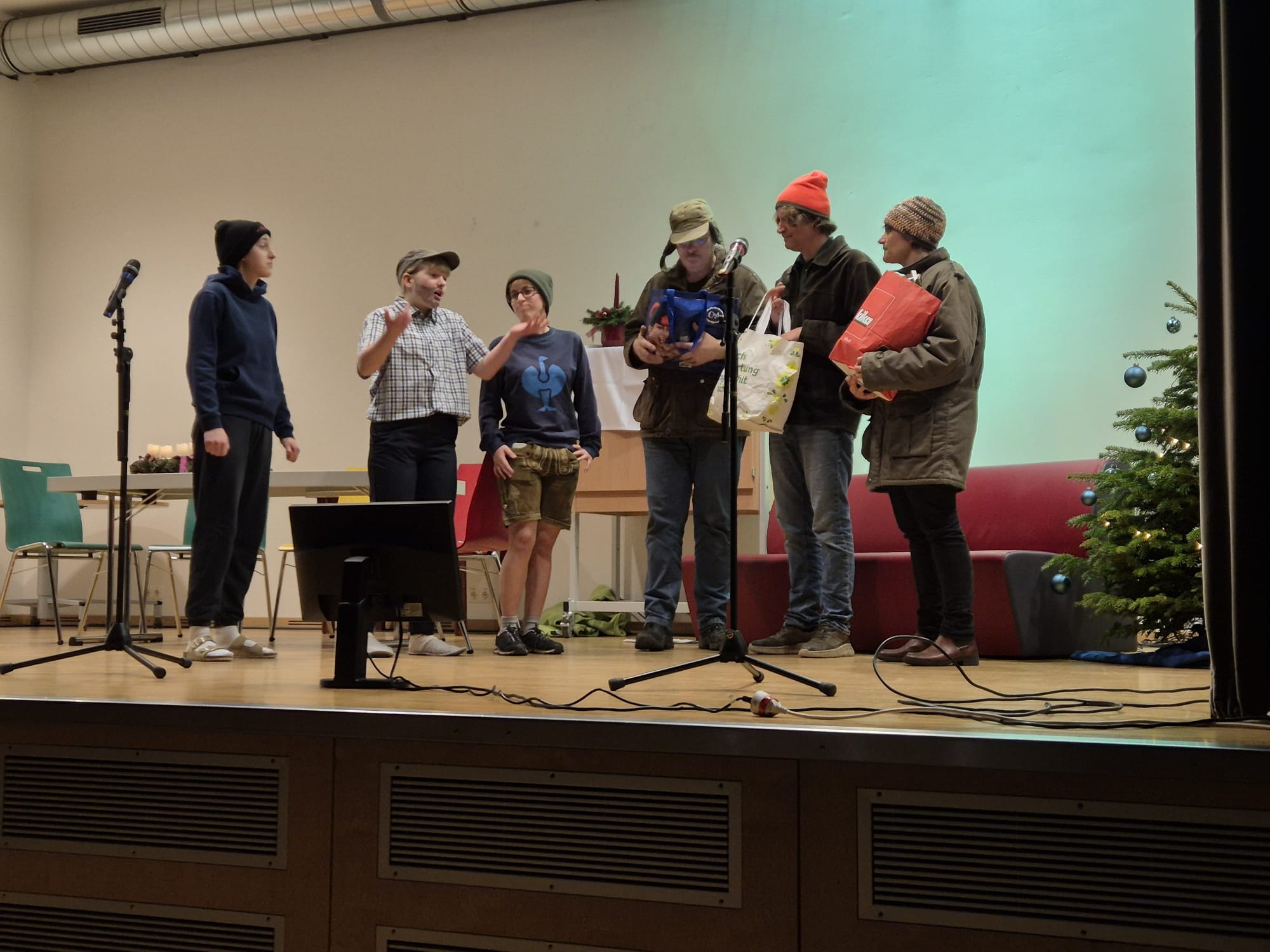 Im weiteren Verlauf begeisterten der Schulchor und die Schulmusikkapelle mit ihren musikalischen Darbietungen. Gedichte sowie das Theaterstück „Drei Fremde suchen Bethlehem“, an dem Schülerinnen, Lehrkräfte und Mitarbeiter gemeinsam mitwirkten, regten zum Innehalten und Nachdenken an und machten den besonderen Gemeinschaftsgeist der Schule spürbar.